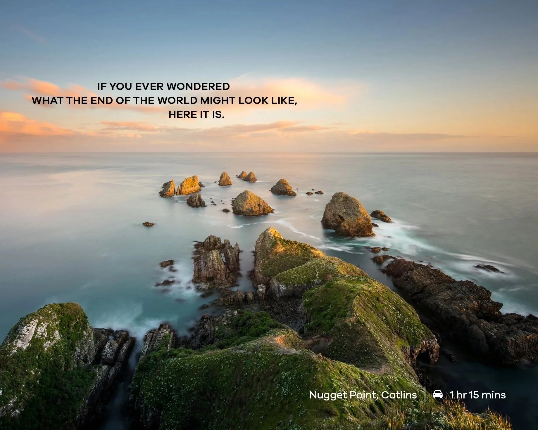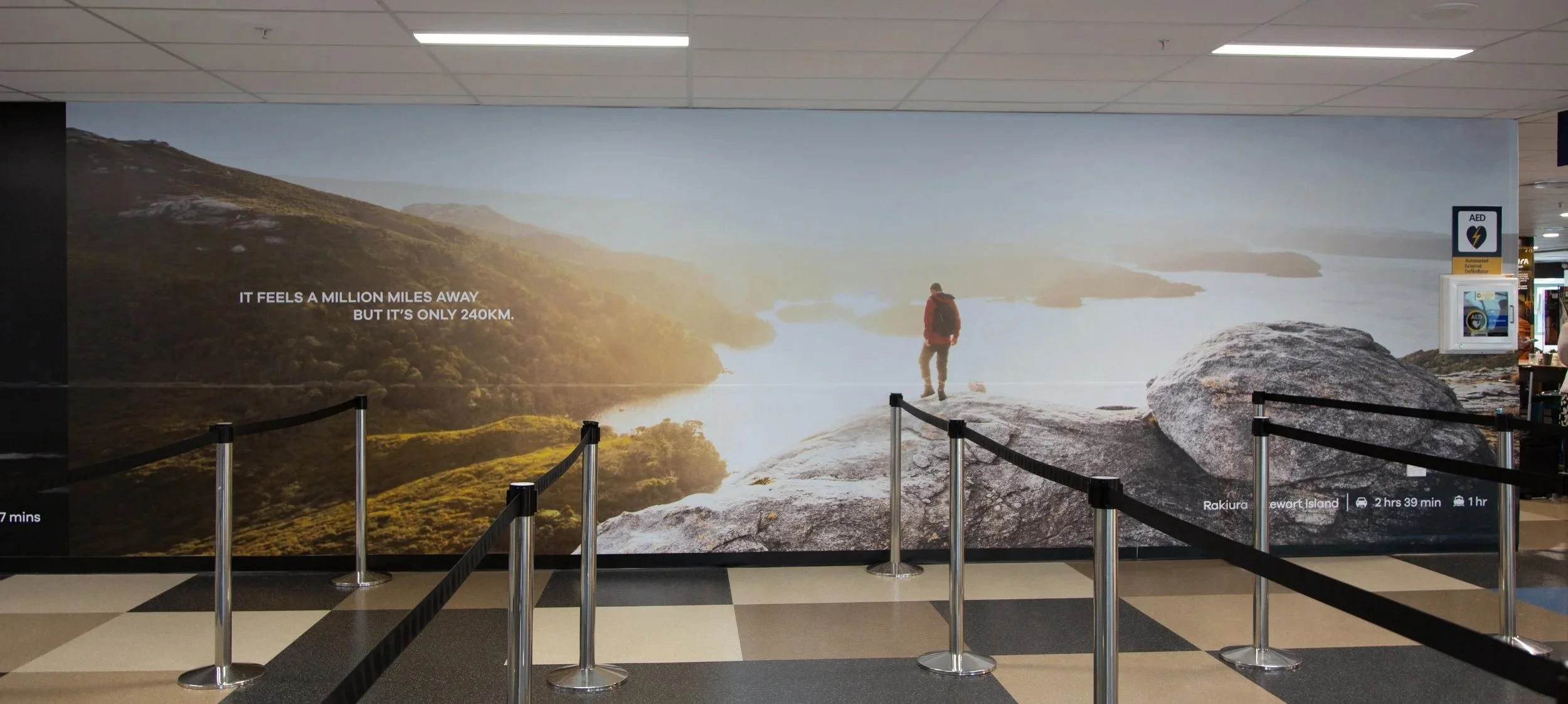 Dunedin Airport has always celebrated Dunedin. But it actually serves a much wider area. To reflect a new strategic positioning, as Gateway to the Lower South, we created a new set of wall art for the terminal. Each one celebrates a different destination in the region.