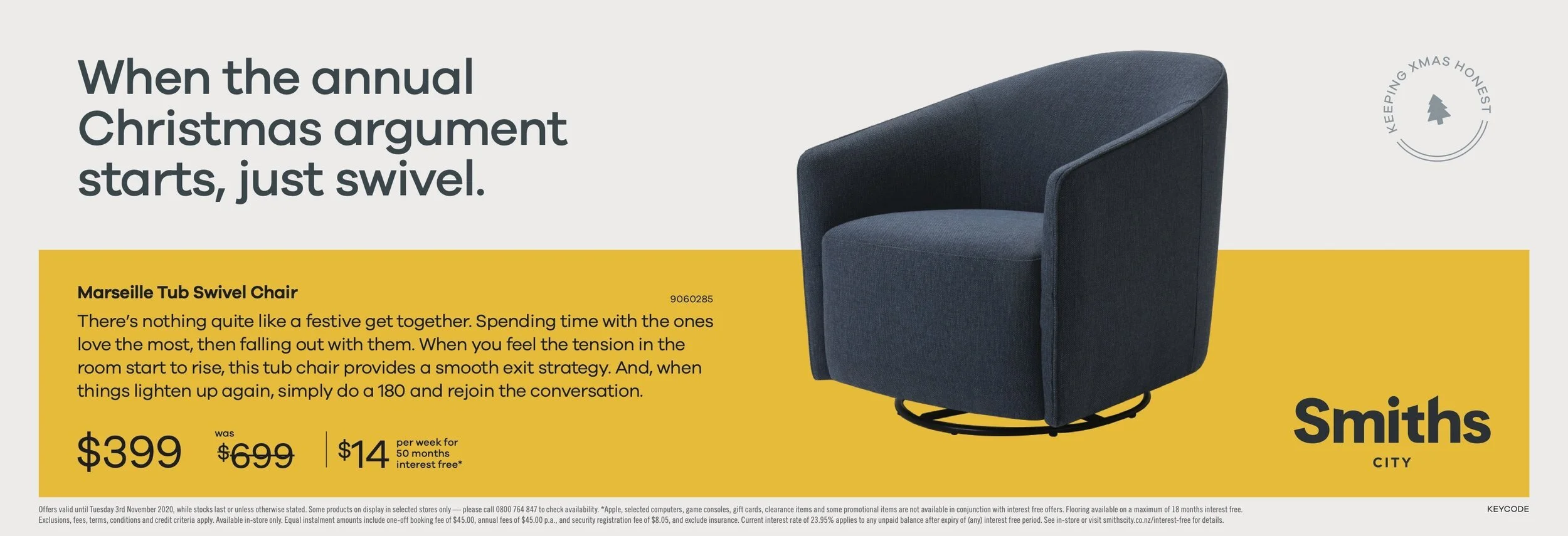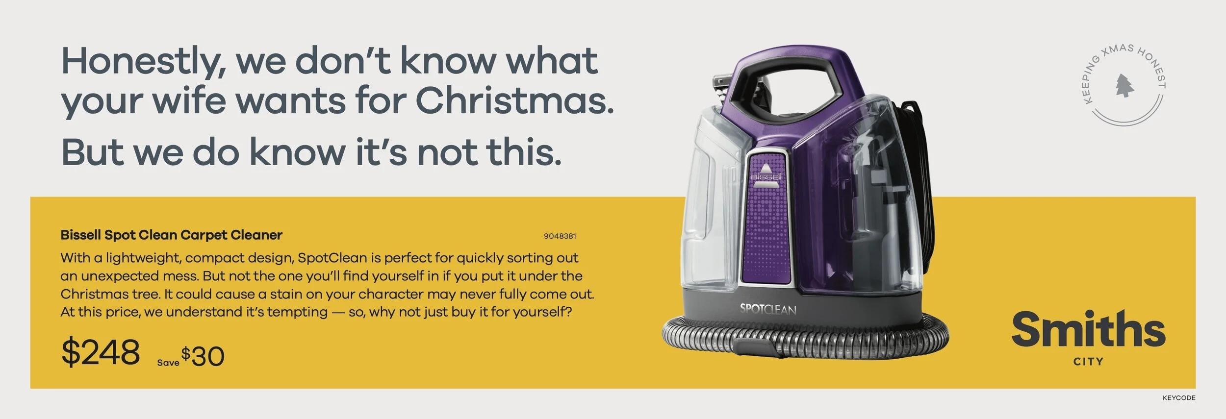 Our festive season campaign for Smiths City acknowledged that, as a homeware and appliance store, not everything we sold made the perfect gift. TV directed by the wonderful Jamie Lawrence, of Eight Productions.